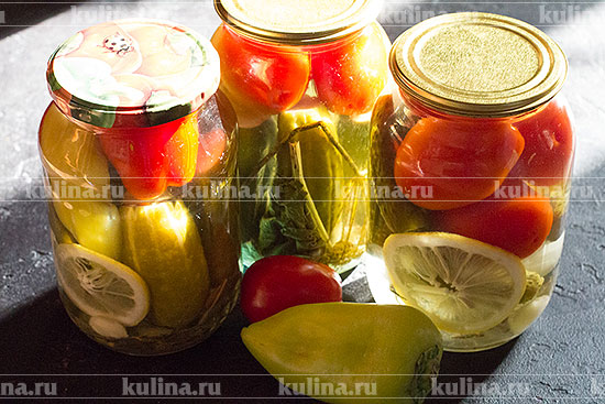 Переверните, остудите под одеялом. Ассорти из овощей на зиму готово.