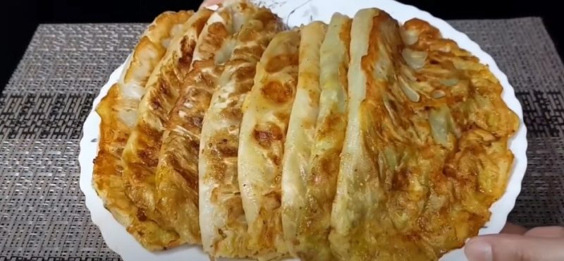 Окунаем каждый голубец – чебурек в кляр и обжариваем на растительным масле под крышкой до румяности.