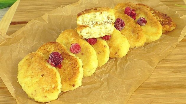 По желанию, посыпать готовые сырники кокосовой стружкой или добавить её на этапе замеса теста (если любите). Можно подавать с ягодами или фруктами. А вообще они итак вкусные.