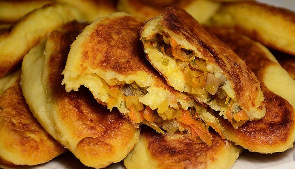 Обжариваем картофельные зразы с капустой и грибами на растительном масле по 3-4 минуты с каждой стороны. Выкладываем на бумажное полотенце. Картофельные зразы с капустой и грибами готовы