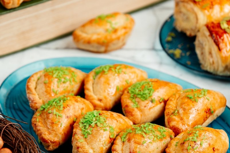 Делим тесто на 16 равных частей, формируем из них колобки и оставляем под целлофаном еще на 10 минут. Затем раскатываем каждый колобок в лепешку и выкладываем на нее начинку. Запечатываем начинку внутри теста, формируем пирожки и обжариваем их на сковороде с растительным маслом до золотистой корочки с обеих сторон. При подаче на стол не забываем класть пирожки на сковороду швом вниз, чтобы сохранить форму и красивый внешний вид блюда.