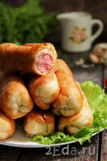 У меня в семье очень любят запечённые и жареные сосиски, предварительно завёрнутые в дрожжевое тесто. Вот решила пожарить сосиски в тесте на сковороде. Такую выпечку можно приготовить для перекуса или к чаю. Тесто, замешанное по этому несложному рецепту, получается очень воздушным и нежным, во время жарки оно покрывается пузырьками. Всем советую приготовить эту вкусную выпечку!