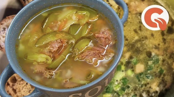 «Перловку замочить минимум на два часа, лучше на ночь. После набухания промыть в холодной воде до исчезновения мути. Соленые огурцы натереть на крупной терке. На основе воды и курицы сварить бульон. Курицу отобрать от костей, мясо нарезать соломкой и вернуть в бульон, довести до кипения. В кипящий бульон насыпать перловку, добавить огурцы, варить 20 минут.