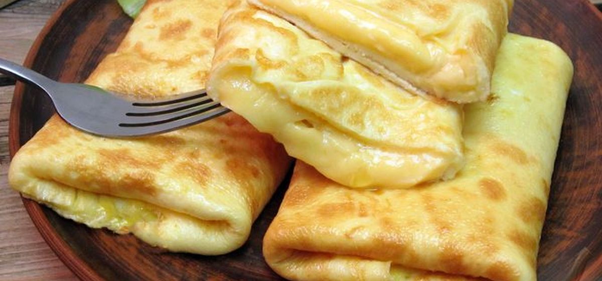 Готовые конвертики из омлета с сыром выкладываем на тарелку и подаём тёплыми.