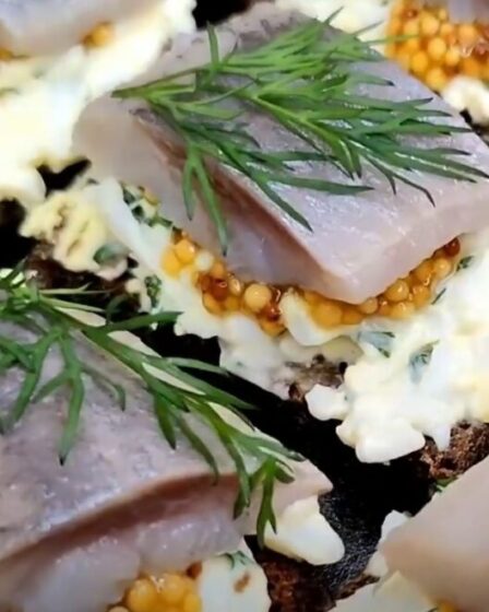 Закуски из сельди с горчицей Филе сельди — 2 шт. Яйцо отварное — 2 шт. Хлеб черный Горчица в зернах — ½ ч.л. Укроп — пучок Майонез — 1 ст.л. Нарезаем небольшими ломтиками хлеб и подсушиваем его на сухой раскаленной сковороде. Натираем на крупной терке вареные яйца, смешиваем с майонезом. Шинкуем мелко укроп, добавляем к …