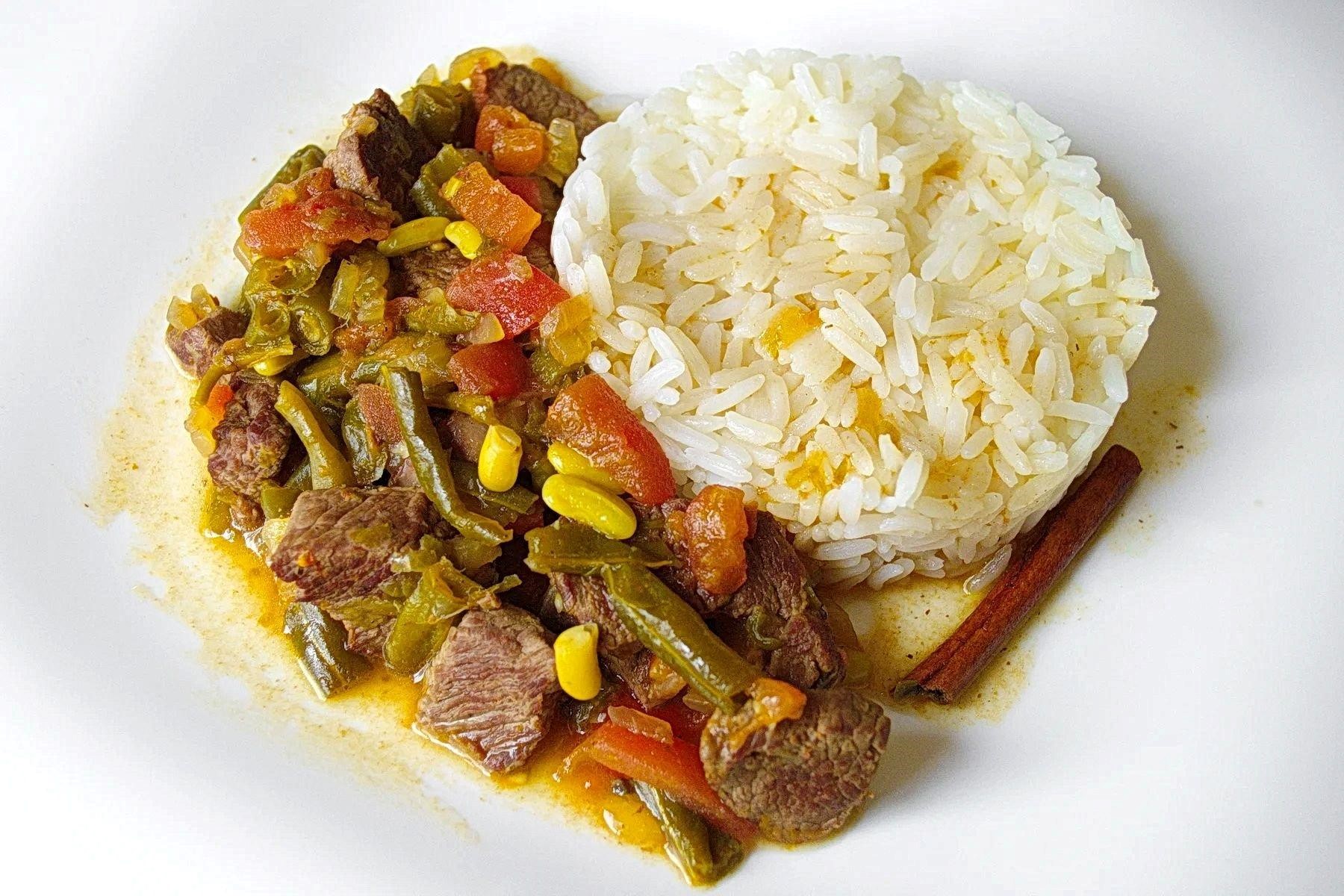 К готовой фасоли добавить помидоры без шкурки кубиком, мясо, чуть-чуть бульона и специи. Смесь специй – это кардамон, корица, мускатный орех в равных пропорциях. Все продается в пакетиках в любом супермаркете.