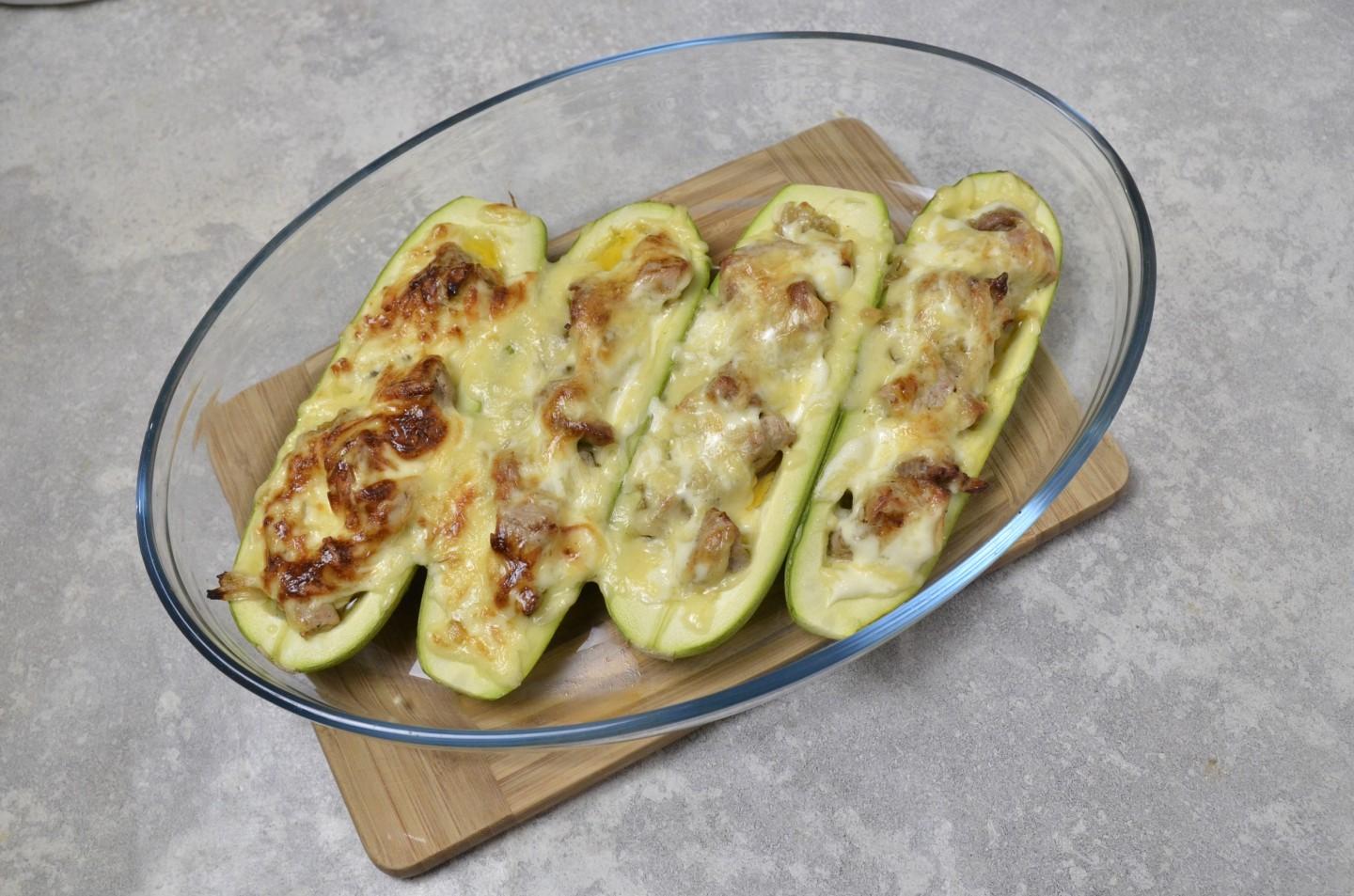 Готовую начинку выложите на кабачки и отправьте их в духовку. Запекайте 25 минут при температуре 180 градусов.