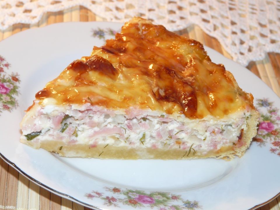 Вылить тесто с начинкой в форму, равномерно распределить, выровнять поверхность, чтобы не было неровностей и отправить запекаться. Подавать его обязательно горячим.