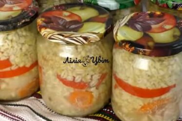 Разложите овощной плов в подготовленные банки, прикройте крышками.