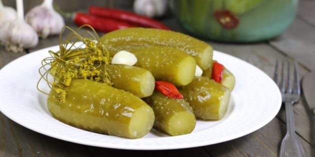 Очень простой рецепт, который не отнимет много времени и сил. Огурчики получатся отменными. Способ засолки — холодный.