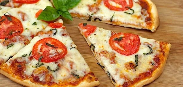 Готовое тесто можно разделить на 2 части и приготовить 2 круглых пиццы диаметром 36 см. А можно приготовить одну большую пиццу на прямоугольный противень.