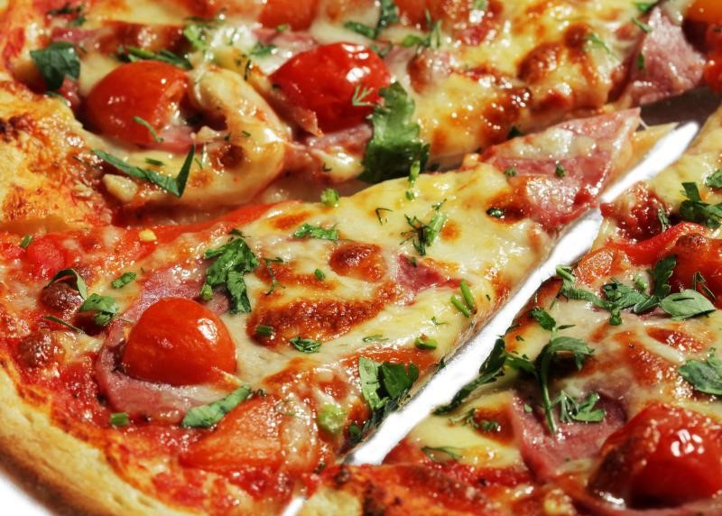 Когда тесто подошло достаточное количество раз, раскатать его по размеру формы, которую предварительно надо смазать маслом, выложить тесто, смазать острым соусом и поочередно начать выкладывать начинку. Посыпать тертым сыром и поставить выпекаться в хорошо разогретую духовку при температуре 200-220 градусов на 20-25 минут.