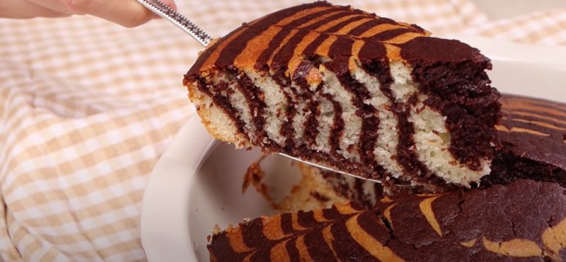 В отличии от классического варианта пирога «Зебра», этот всегда получается пышным и нежным, очень аппетитным и вкусным. Крем можно сделать любой.