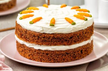 Готовый пирог переложить на тарелку, перевернув нижней частью вверх. Когда он слегка остынет, посыпать сахарной пудрой.
