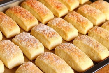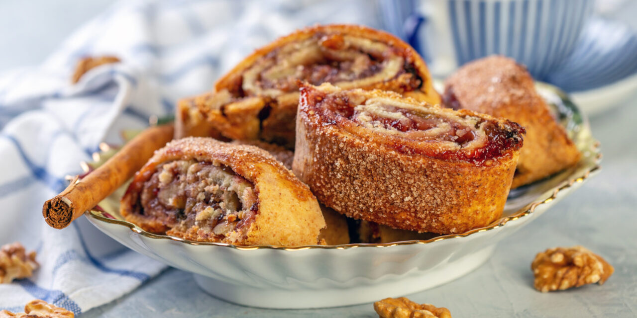 Выложите рулеты на противень и выпекайте 25–30 минут до золотистого цвета. Достаньте из духовки, слегка остудите и разрежьте кусочки до конца.