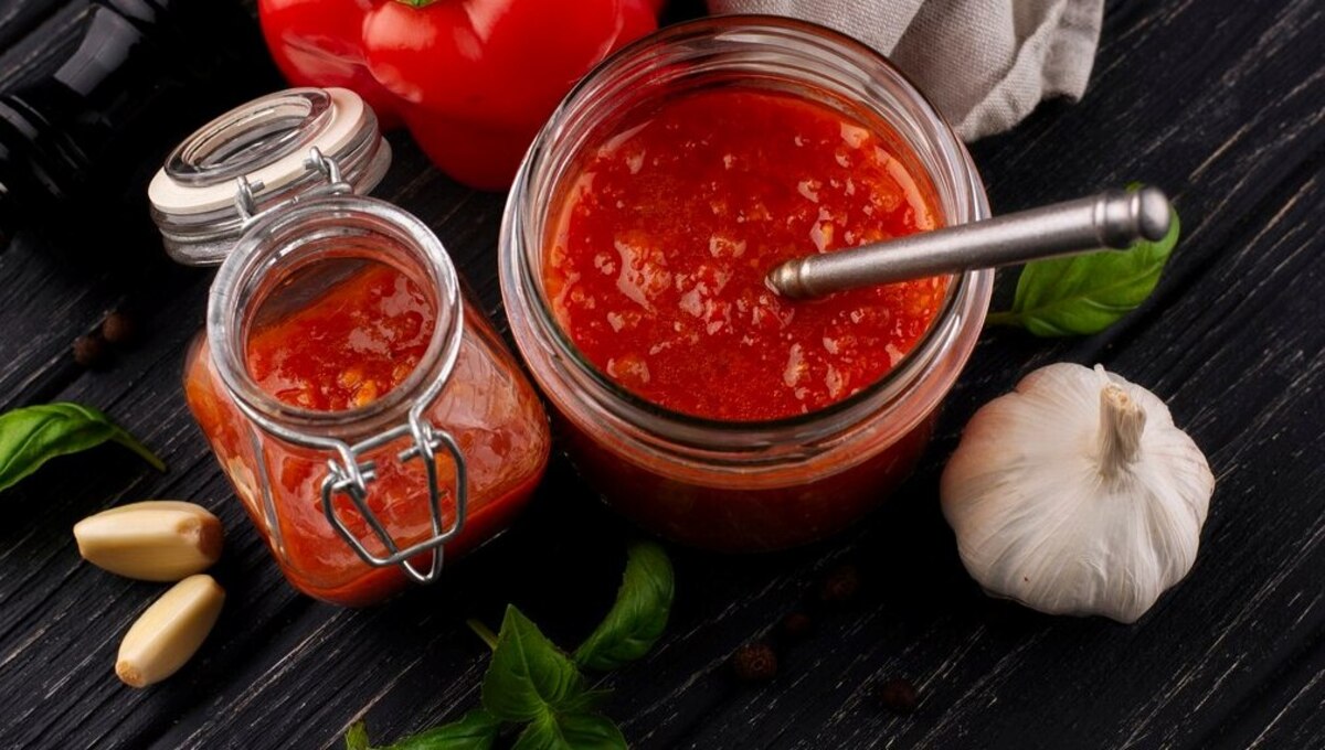 Вот и всё. Осталось разложить очень горячий соус в стерилизованные банки и закрыть прокипяченными крышками. Удобно, если баночки будут маленькими. Хранится заготовка в холодильнике или прохладном погребе. По вкусу и пользе не идёт ни в какое сравнение с покупным.