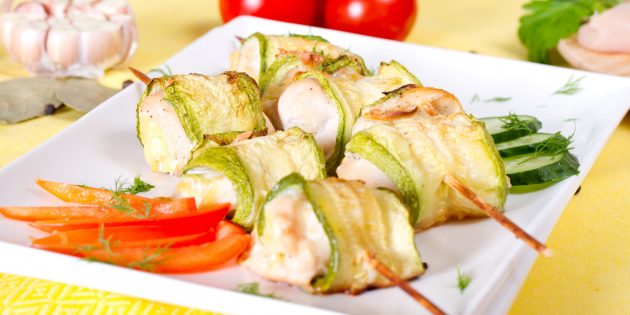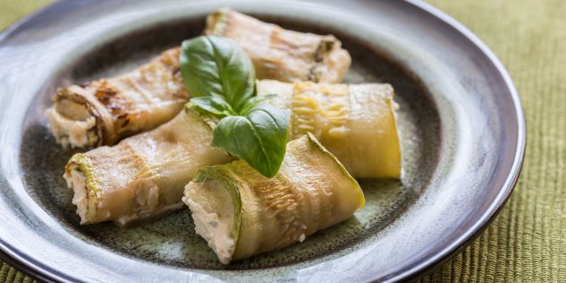 2. Запечённые рулетики из кабачков с курицей, творогом и сыром