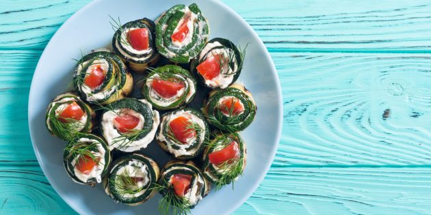 5. Рулетики из кабачков с сыром, помидором и базиликом