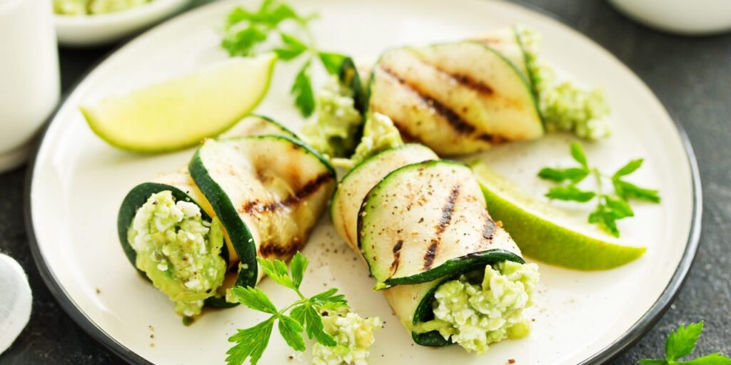 6. Рулетики из сырых кабачков с крабовыми палочками и авокадо
