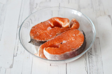 Как запечь красную рыбу в духовке? Подготовьте ингредиенты. Рыбу, если она у вас замороженная, разморозьте, переложив ее из морозилки на нижнюю полку холодильника. Набор специй выбирайте по своему вкусу и предпочтениям.