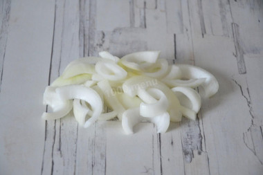 Луковицу очистите и нарежьте кольцами или полукольцами. Лук придаст рыбе сочность и приятный аромат.