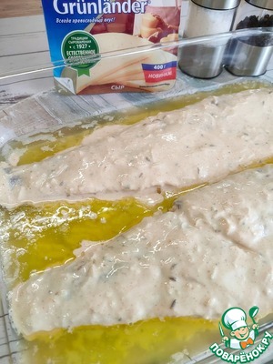 Обваляйте рыбу со всех сторон в темпуре и выложите в форму.