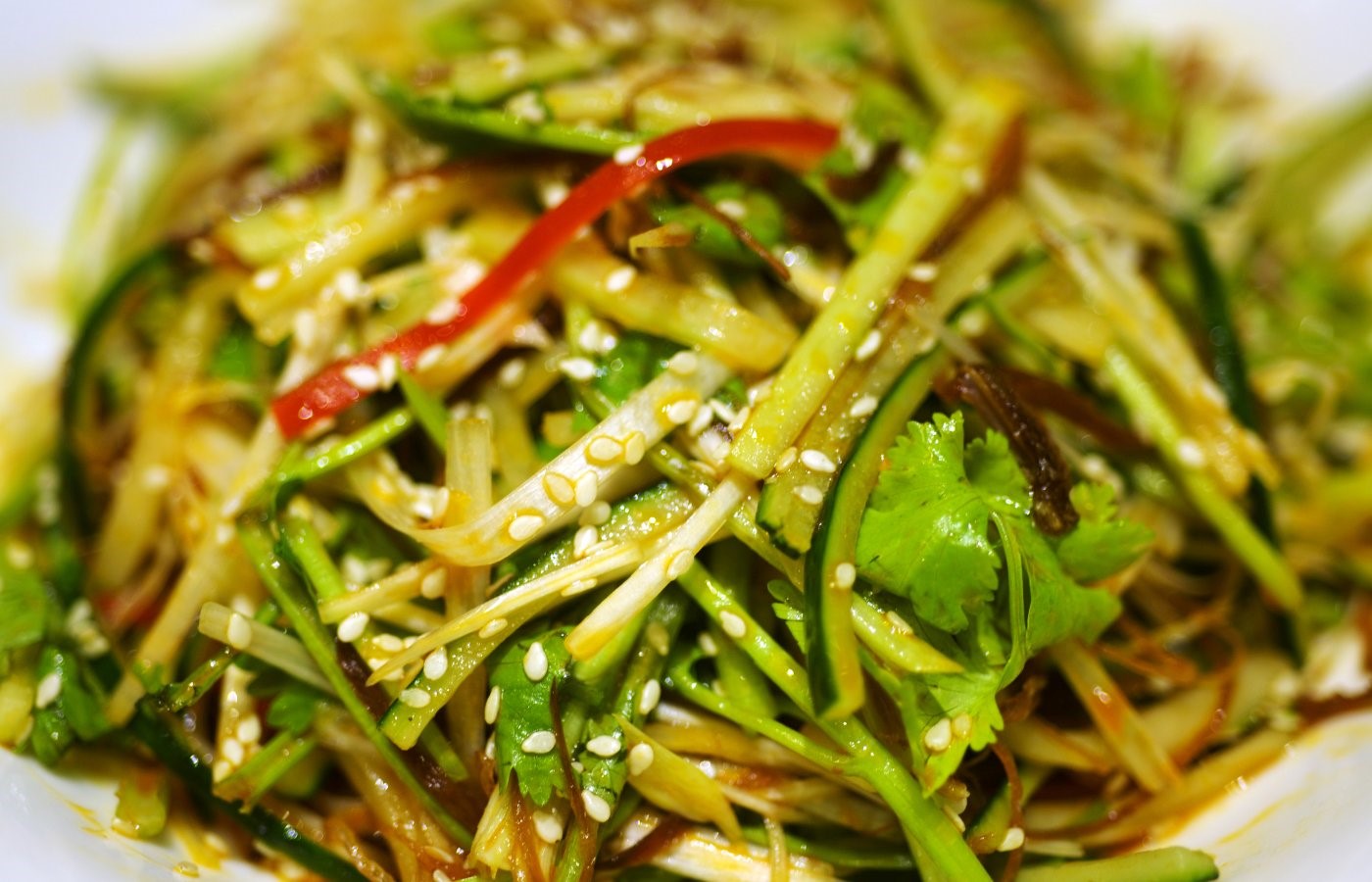 При подачи салат необходимо посыпать жареными семечками кунжута.