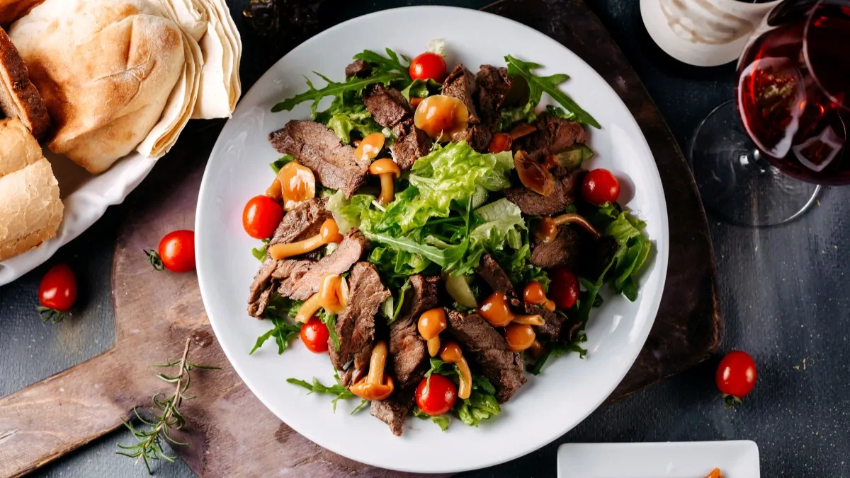 Салат «Грибные поляны под соевым соусом и виноградом»