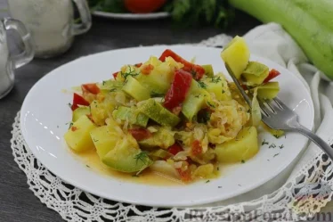 В отдельной сковороде растопите оставшееся сливочное масло (50 г). Обжарьте измельченный чеснок и лук до золотистого цвета. Добавьте помидор, а через пару минут – морковь и капусту. Обжаривайте овощи, помешивая, до мягкости капусты. Посыпьте овощи солью, паприкой и измельченной зеленью.