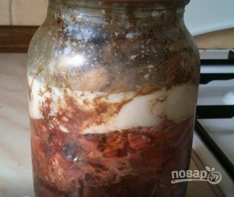 Накройте заполненную емкость крышкой для консервирования, но перед этим достаньте из нее резинку.