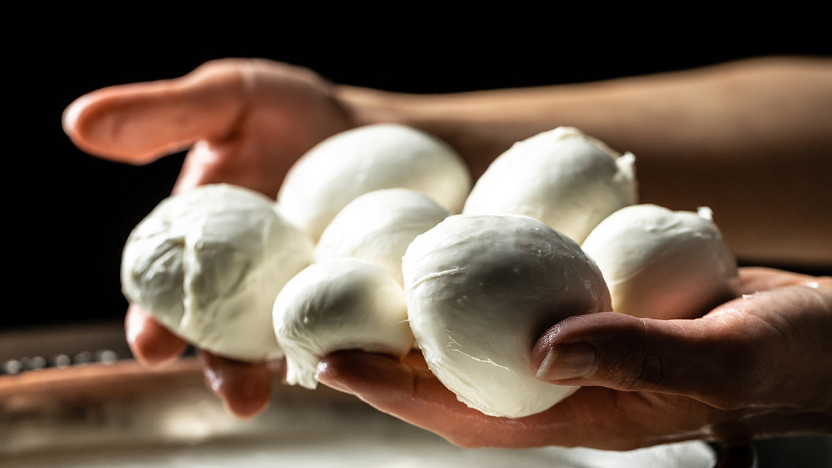 Моцарелла на этом этапе станет более однородной и очень эластичной. Формируем из нее один шар или маленькие шарики.