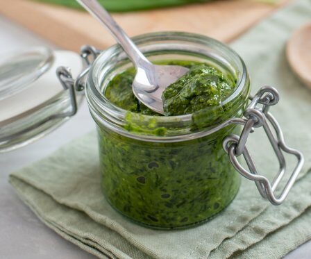 Эту заготовку можно хранить не только в холодильнике, но при желании – и в морозильной камере. Свою пряность и остроту паста сохранит и там. 600 г перьев чеснока 4 ст.л. растительного масла 2 ч.л. соли 1-2 ч.л. специй по вкусу. Перья чеснока промойте и обсушите. Разрежьте на несколько частей и измельчите в блендере. Затем заправьте …
