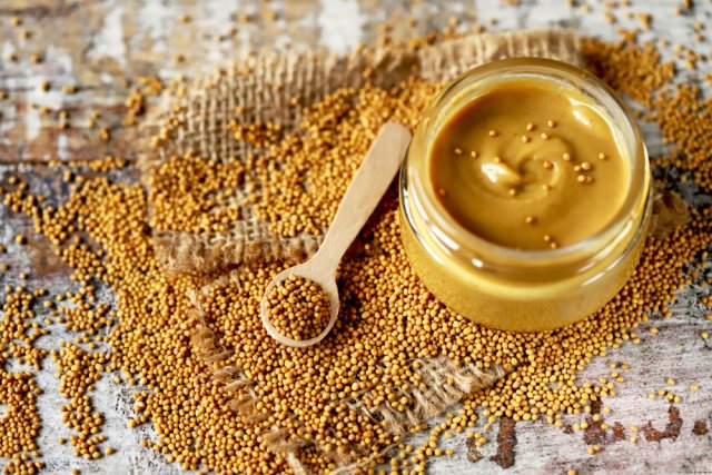 Мясо нарежьте небольшими кусочками, натрите специями. Положите в глубокую емкость. Из горчицы разных видов сделайте маринад, при желании добавив туда воду. Равномерно перемешайте мясо с маринадом и отправьте в холодильник на несколько часов.
