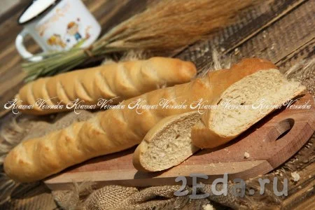 Смазать багеты молоком, поставить в разогретую духовку и выпекать минут 25-30 при температуре 180 градусов.