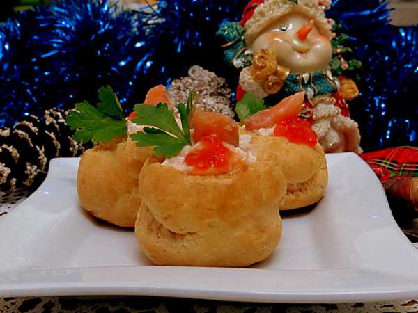 Закусочные профитроли с лососем готовы.