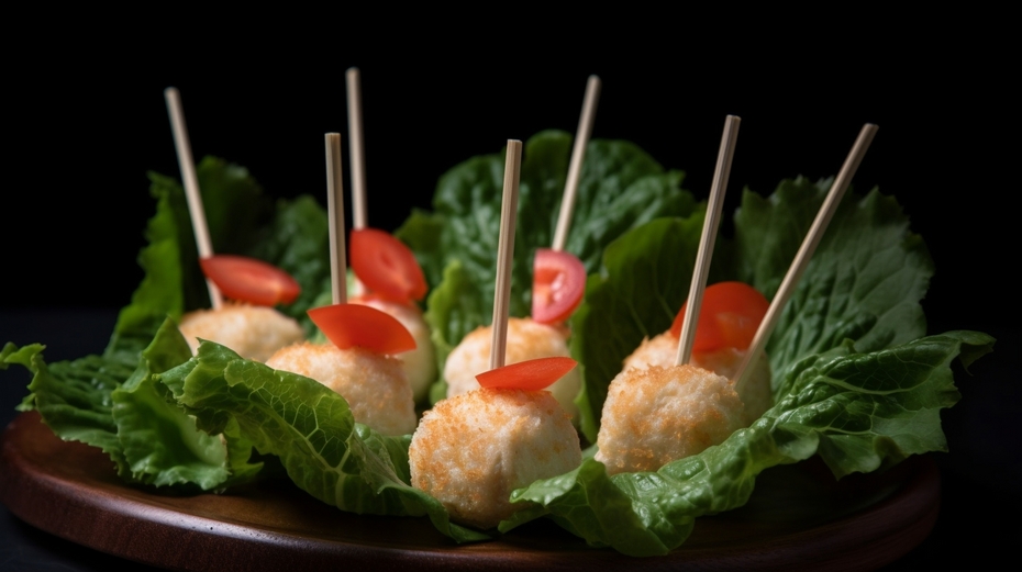 Столовой ложкой берем часть массы и смоченными в холодной воде руками формируем шарики. Обваливаем каждый в измельченной цветной части крабовых палочек. Подавать закуску можно на блюде, выложенном листьями салата, по желанию — украсить укропом.