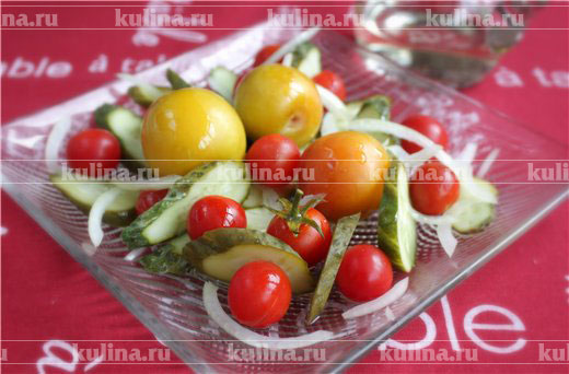 Подавать ассорти, полив растительным маслом и посыпав рубленным луком.