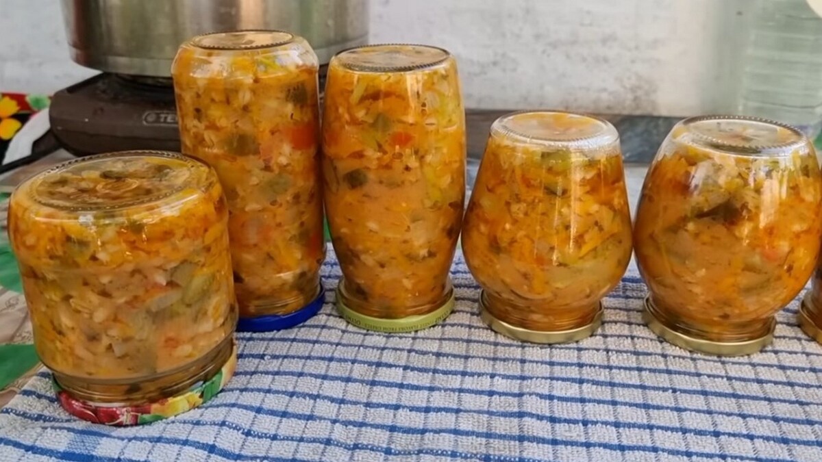 После этого всыпаем огурцы и перловку, перемешиваем, доводим до кипения и на небольшом огне варим 15 минут, вливаем уксус и оставляем кипеть еще 12 минут. Готовое блюдо раскладываем по стерилизованным банкам и закатываем крышками. Перловка отлично проварится, а огурцы прекрасно замаринуются в банке
