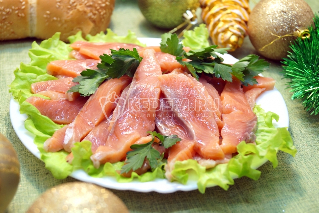 Праздничная малосольная горбуша готова. Можно подавать к Новогоднему столу.