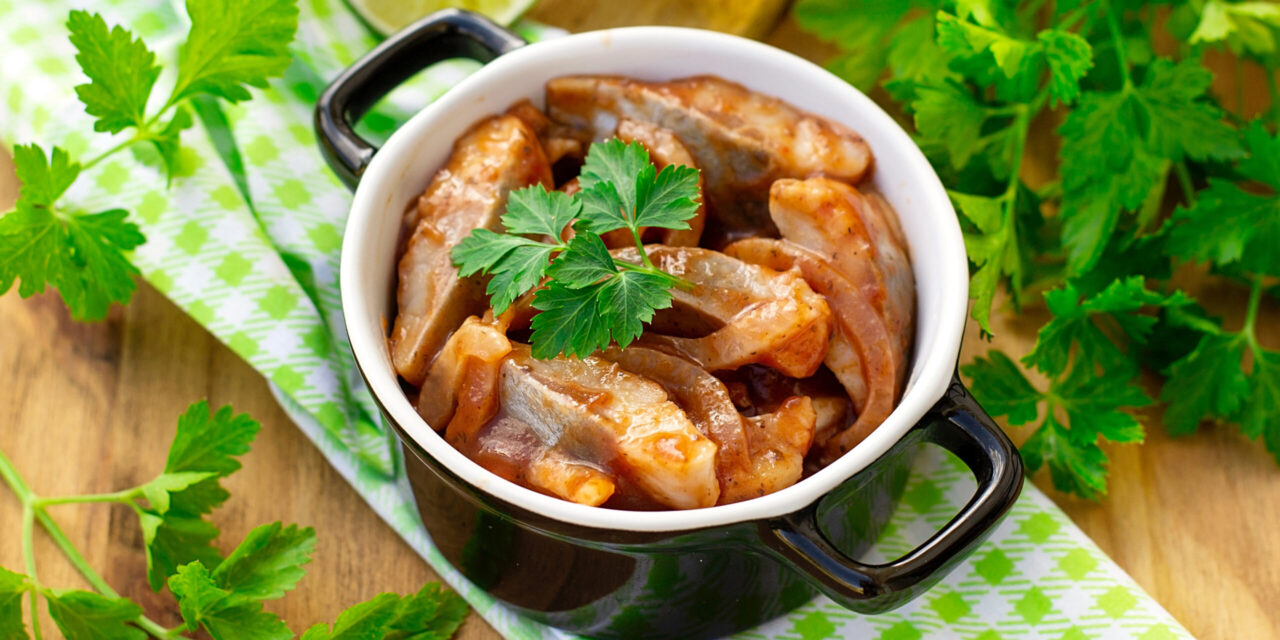 Пряную домашнюю селёдку в томатном маринаде по этому рецепту можно есть уже через сутки. Вы не заметите, как рыба исчезнет со стола, так что готовьте сразу побольше.
