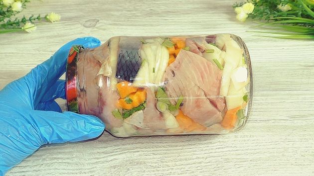 И ещё банку для засола лучше брать 1.5 литра, тогда овощей можно добавить больше, а они съедаются ещё быстрее рыбы.